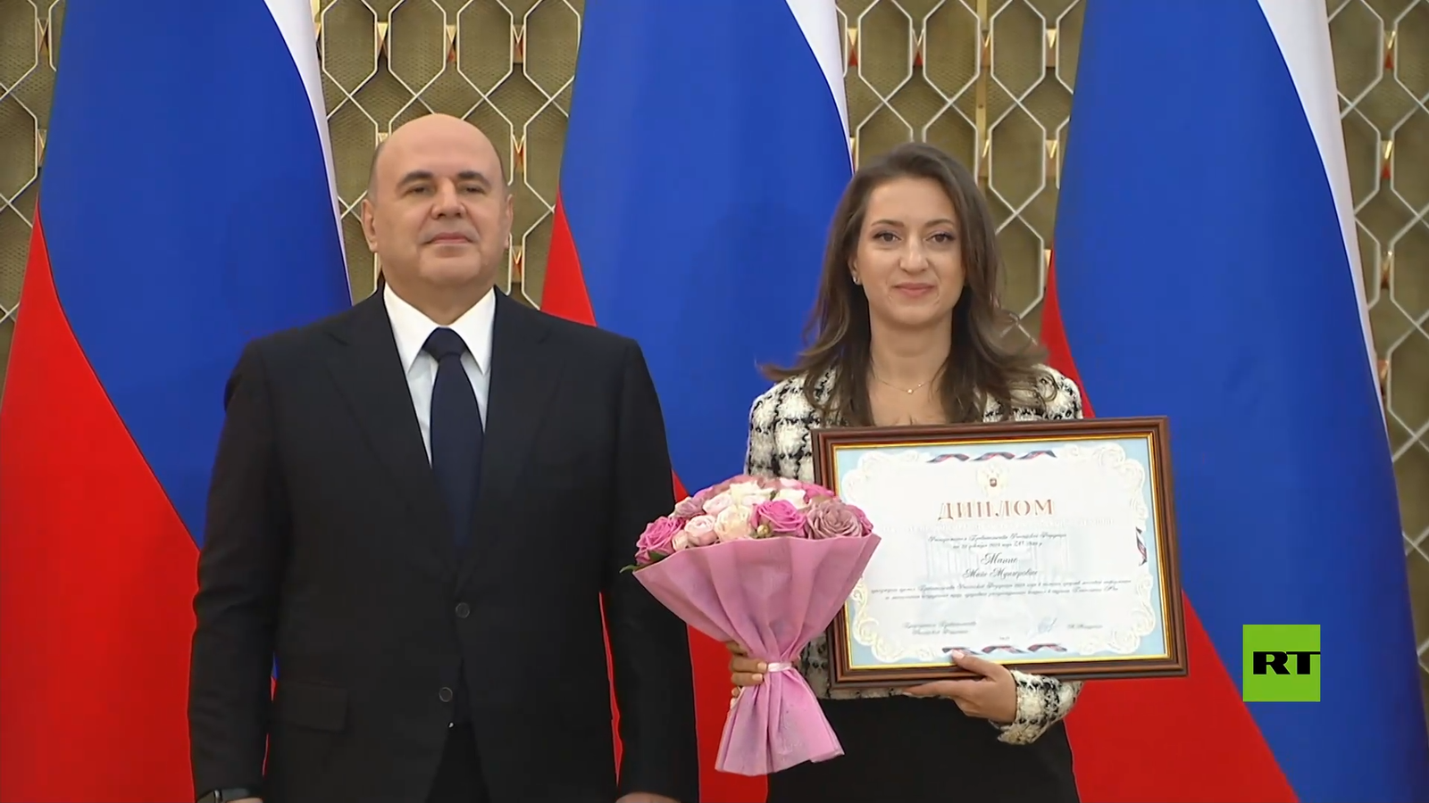 وتم التسليم الرسمي للجوائز يوم الثلاثاء، المصادف ليوم الصحافة الروسية، في حفل رسمي، وتم منح الجائزة لكل من إليزافيتا برودسكايا نائبة رئيس التحرير الأولى للمحتوى الإخباري في قناة RT، ومايا مناع نائبة رئيس التحرير ومديرة إدارة البث الإخباري باللغة العربية في القناة، وفيكتوريا فورونتسوفا نائبة رئيس التحرير ومديرة إدارة البث الإخباري باللغة الإسبانية في القناة، ودينارا توقتوسونوفا المديرة الإبداعية لوكالة الفيديو “Ruptly” التابعة للشبكة.