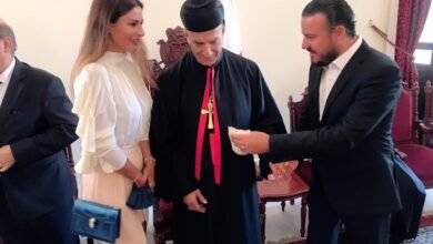 كاتيا كعدي وعريسها يباركان زواجهما بزيارة الى غبطة البطريرك