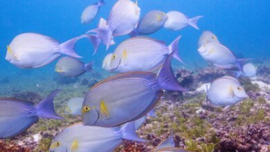 مدرسة أسماك الجراح في جزيرة كويبا في بنما. الائتمان: شون ماتسون إن السماح لأسماك الشعاب المرجانية بالتعافي يمكن أن يزيد…